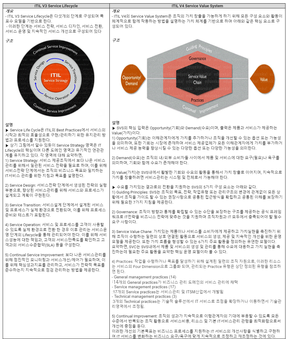 Below is a summary of SVS components and a comparison with ITIL V3’s Service Lifecycle.