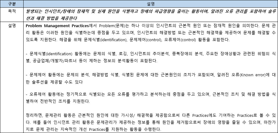 The 17 Service Management Practices can be applied to specific services developed, deployed, delivered, and supported within an organizational environment. These practices are considered for all services and provide a comprehensive perspective for managing services and products.