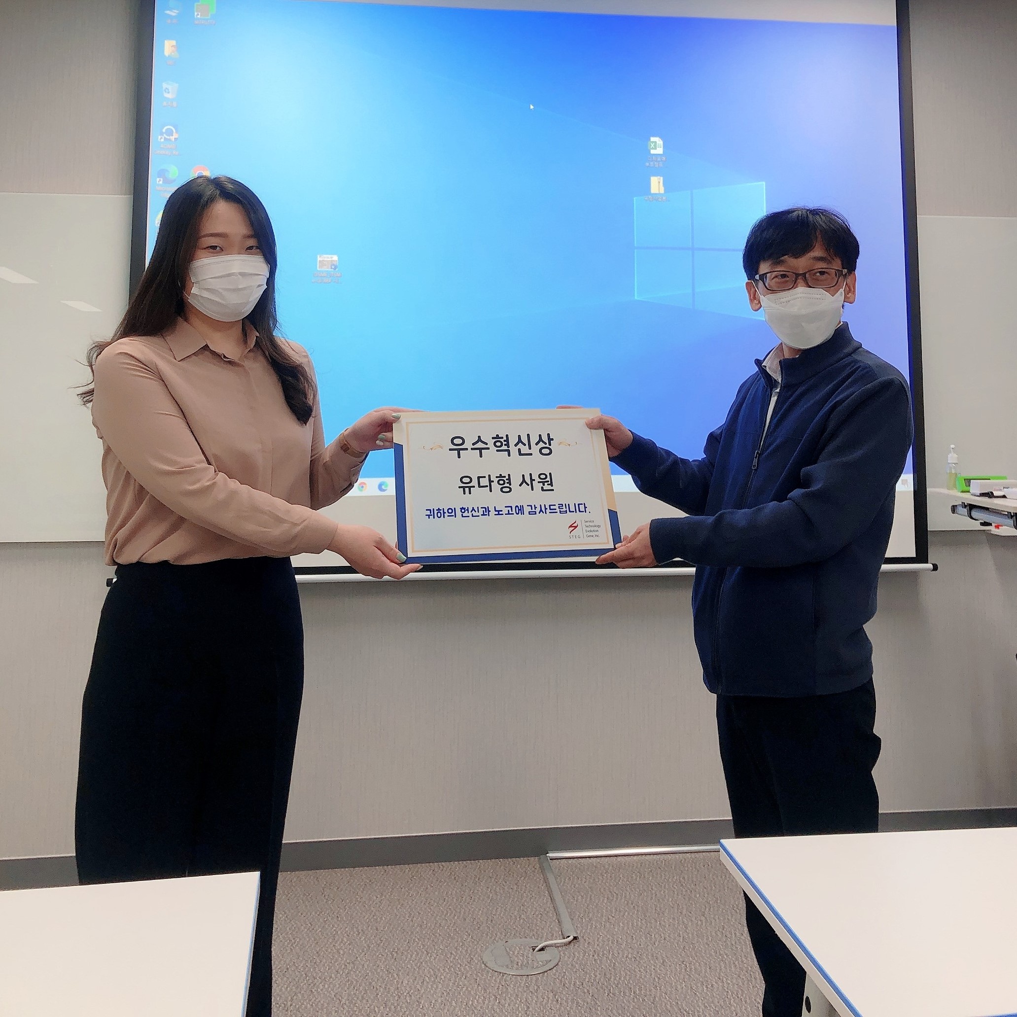 우수 혁신상이라는 이름에 걸맞게 항상 발전하고 혁신을 이끌어 낼 수 있도록 더 열심히 정진하겠습니다.