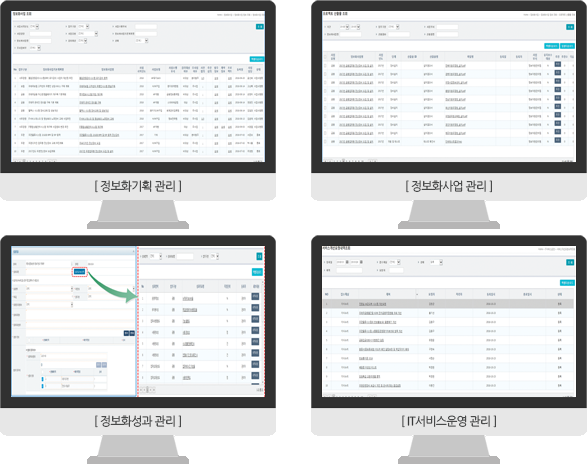 정보화기획- 다수의 시스템에 분산 관리되고 있던 정보화전략 및 기획 관련 정보를 단일 시스템으로 일원화 및 표준화- 정보화 기획에서 실행까지 전체 생명주기를 통합 관리하여 정보화사업 추적성을 강화하고 성과관리의 일관성 유지