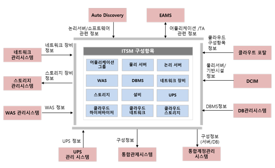 구성 관리- 구성항목 분류체계 재정립으로 신뢰성 있는 구성정보 제공- 각종 모니터링 툴과의 연계를 통한 구성항목 현행화 기능 구현으로 구성정보 정합성 유지