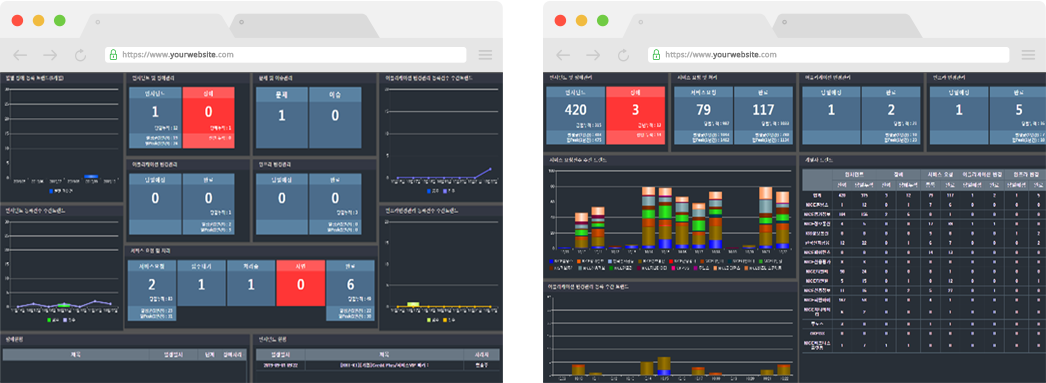 - 주요 프로세스 별 실시간 처리현황 제공- 그룹 계열사 개별/통합별 실시간 처리현황/추이정보 제공