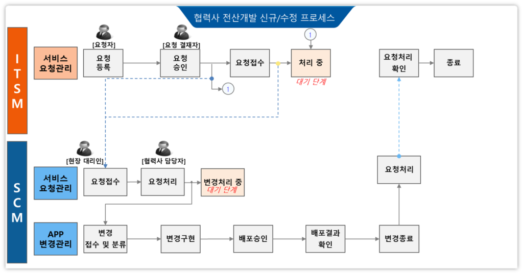 그럼 ITSM과 협력사 ITSM 간 개발변경 등의 주요 업무처리 절차에 대해 소개해보고자 한다.