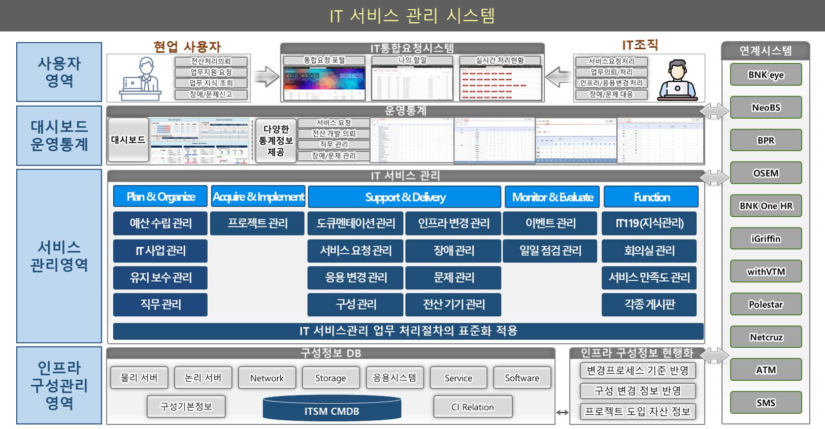 이에 따라 부산은행도 ITSM 재구축을 통해 워크플로우 기반의 IT서비스체계 구축하게 되었다.