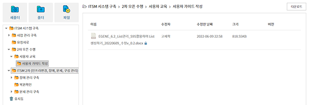 프로젝트 WBS 공정에서 정의/등록한 산출물 파일을 조회하여 다운로드할 수 있다. WBS 공정의작업 처리단계에 관련 산출물을 등록하게되면 드라이브 메뉴를 통해 등록된 산출물 정보를 바로 확인하고 관리할 수 있으며, 공식 산출물 이외의 파일 또한 드라이브에 업로드하여 관리할 수 있다. 업로드 파일은 버전관리가 되므로 이전 버전의 파일정보를 확인할 수 있다.