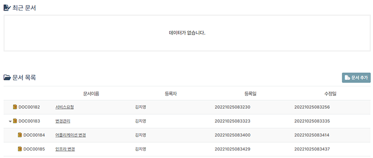 문서 관리는 프로젝트 진행에 필요한 업무 및 작업 등의 정보공유를 제공하는 기능으로, 문서편집기를 통해 온라인으로 문서를 편집하여 프로젝트 내 정보공유 등의 기능으로 편리하게 사용이 가능하다.