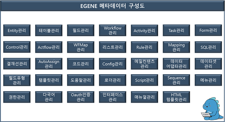 E-GENE 솔루션에서 제어하는 메타데이터는 아래와 같은 내용을 포함한다.
