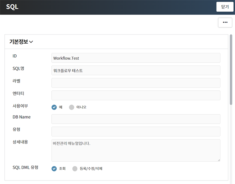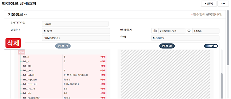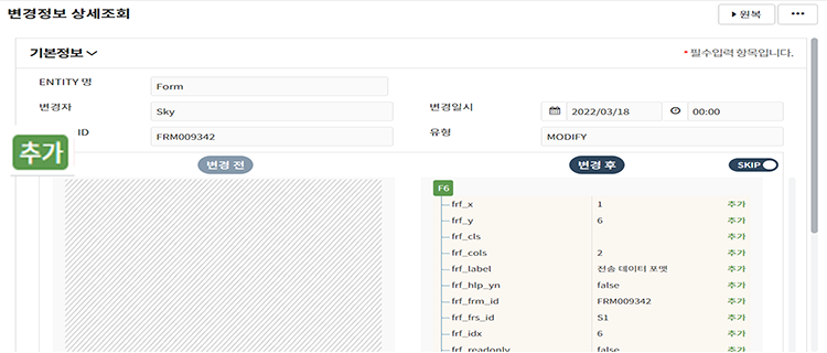 ■ 현재 버전의 데이터를 Form UI 형태로 조회할 수 있는 화면이 나타난다.
