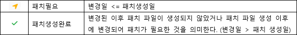 - 패치 관리에서 E-GENE 메타데이터의 변경자와 패치 생성 여부를 확인할 수 있으므로 패치파일을 생성해야 한다.