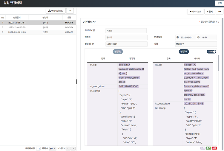 지금까지 E-GENE 메타데이터 관리 중 추가 기능인 변경 이력 관리, 패치 관리를 살펴보았다.