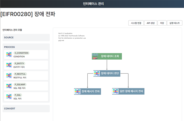 인터페이스 관리는 연결대상 시스템에 대한 설정관리와 인터페이스 처리 흐름을 제어할 수 있는 워크플로우 기능, 인터페이스 기능별 모듈을 제공하여 시민 개발자들이 필요한 기능을 구현함에 진입장벽을 낮추려는 목적이 있다. 이 기능을 이용하여 시민 개발자들은 만들고자 하는 기능을 큰 어려움 없이 만들 수 있다.