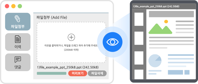 또한, 첨부 문서를 다운로드하지 않고 내용 조회가 가능하기에 정보 유출의 위험이 감소하며 더욱 안전한 문서 관리가 가능합니다.
