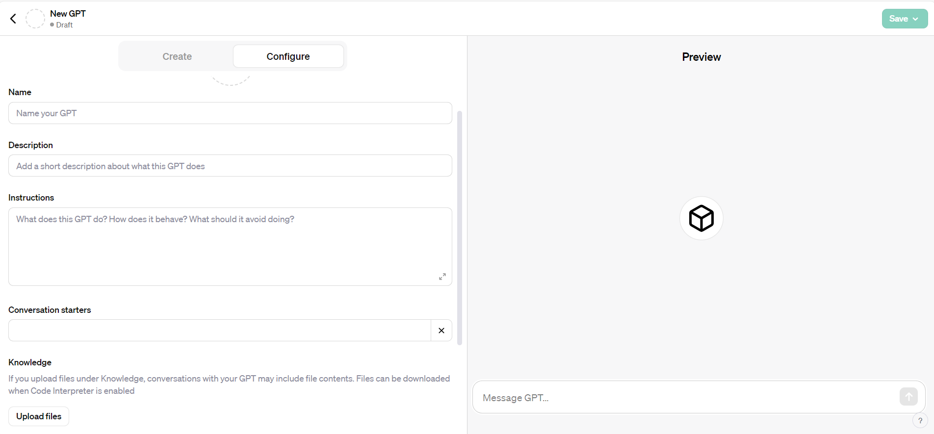 [그림 1] GPTs 셋팅 화면