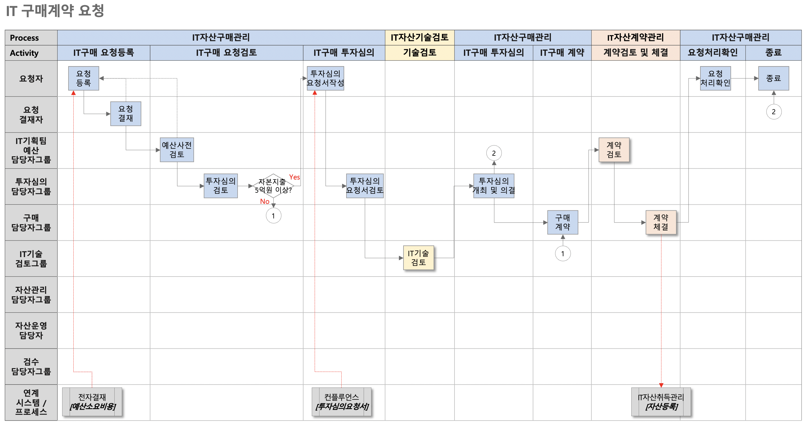[그림1] IT 구매계약 요청 프로세스 흐름도 - 자산구매/계약