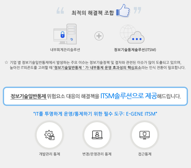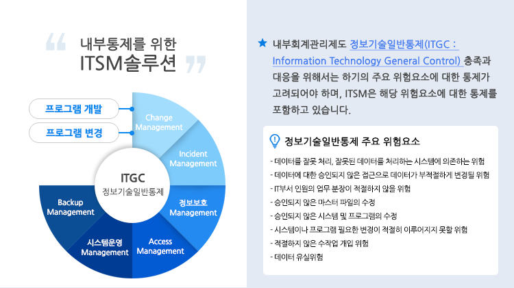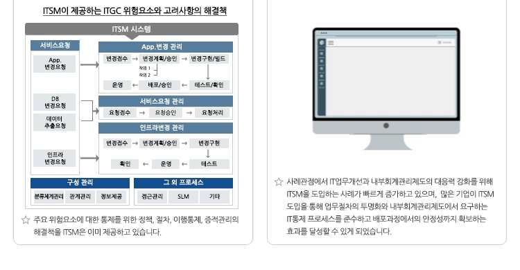 커뮤니티 정보기술일반통제 대응의 해결책 - ITSM 작성자관리자 등록일2021.07.19 PREV 흥국생명 ITSM/IT거버넌스 '흥잇음' 오픈 성공 NEXT E-GENE™ SLM 솔루션이 제공하는 ‘진화’된 SLA : 흥국생명 SLA 구축사례 목록으로