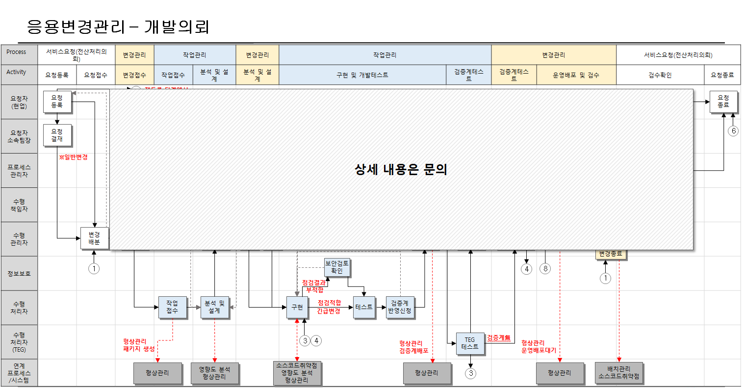 이 유형들 중 현업의 사용량이 많고 응용시스템의 개발운영에 매우 중요한 개발의뢰, 데이터변경 유형에 대해 프로세스 절차를 통한 개선 적용된 과정을 설명하고자 한다.