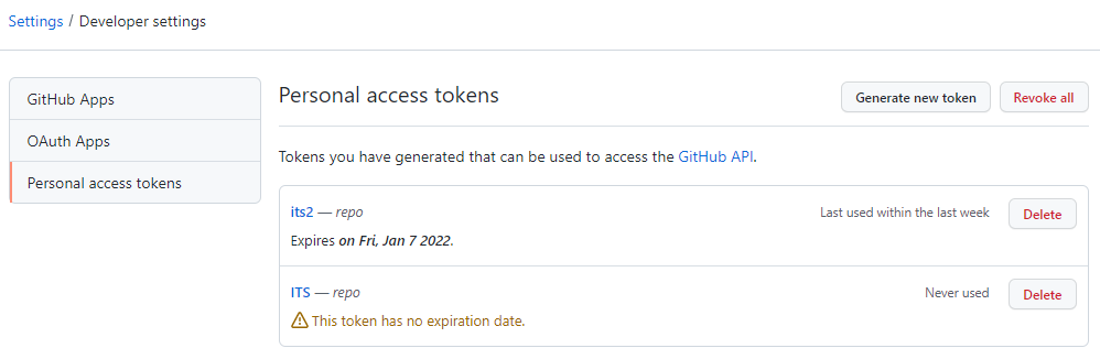[그림1. GitHub Token 설정화면 예시]