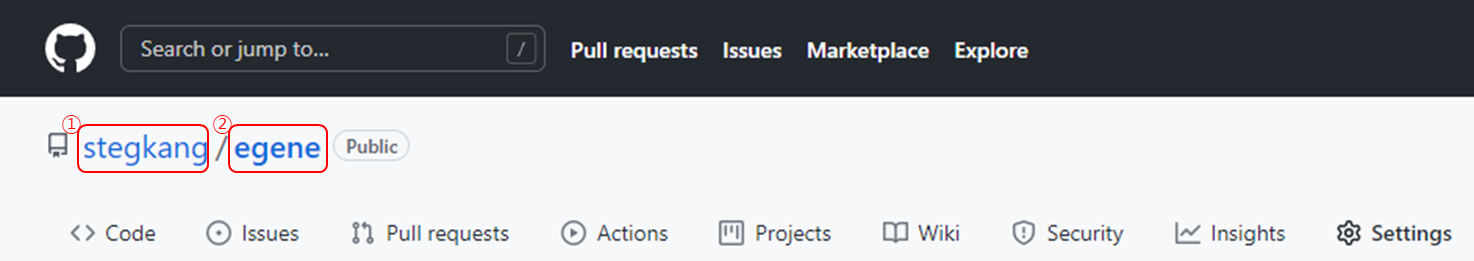 [그림2. GitHub ①Owner ②Repository]