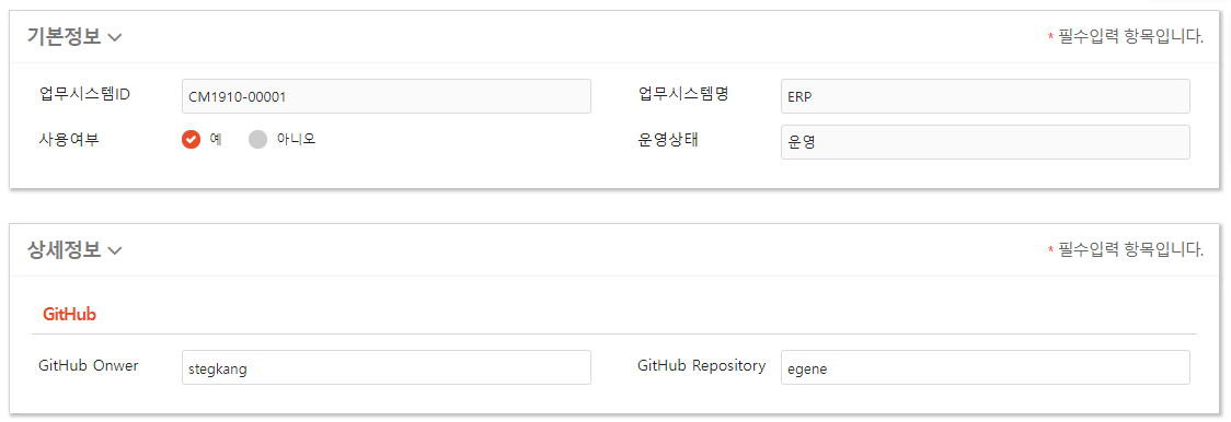[그림4. GitHub Owner/Repository 정보 입력화면 예시]