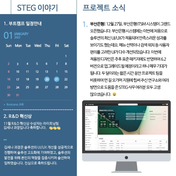 커뮤니티 월간 STEG 22년 1월호 작성자관리자 등록일2022.01.05 PREV 4차 산업혁명 핵심기술과 E-비즈니스 NEXT 함께 인지하고, 빠르게 반응해야 하는 보안 이슈 목록으로