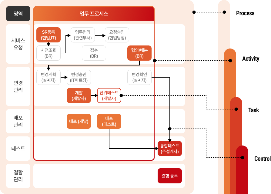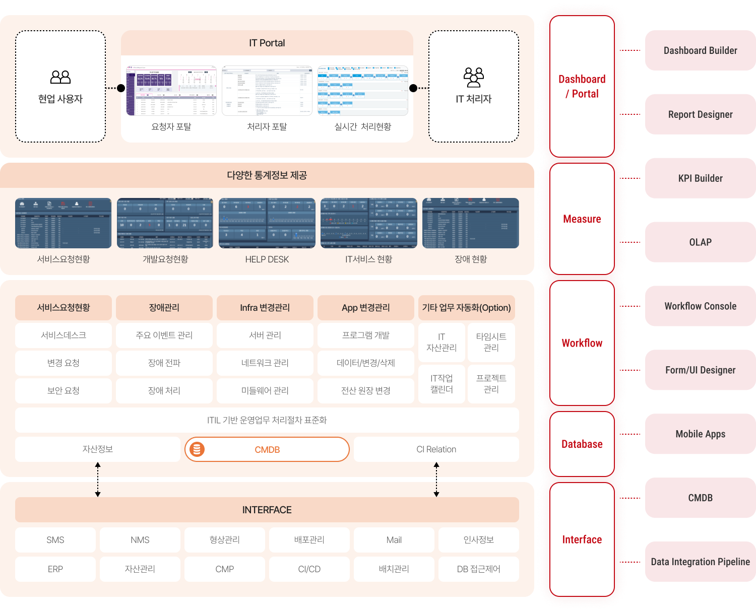 E-GENE 솔루션의 Workflow 플랫폼은 ITSM 시스템 기술요소에 대해